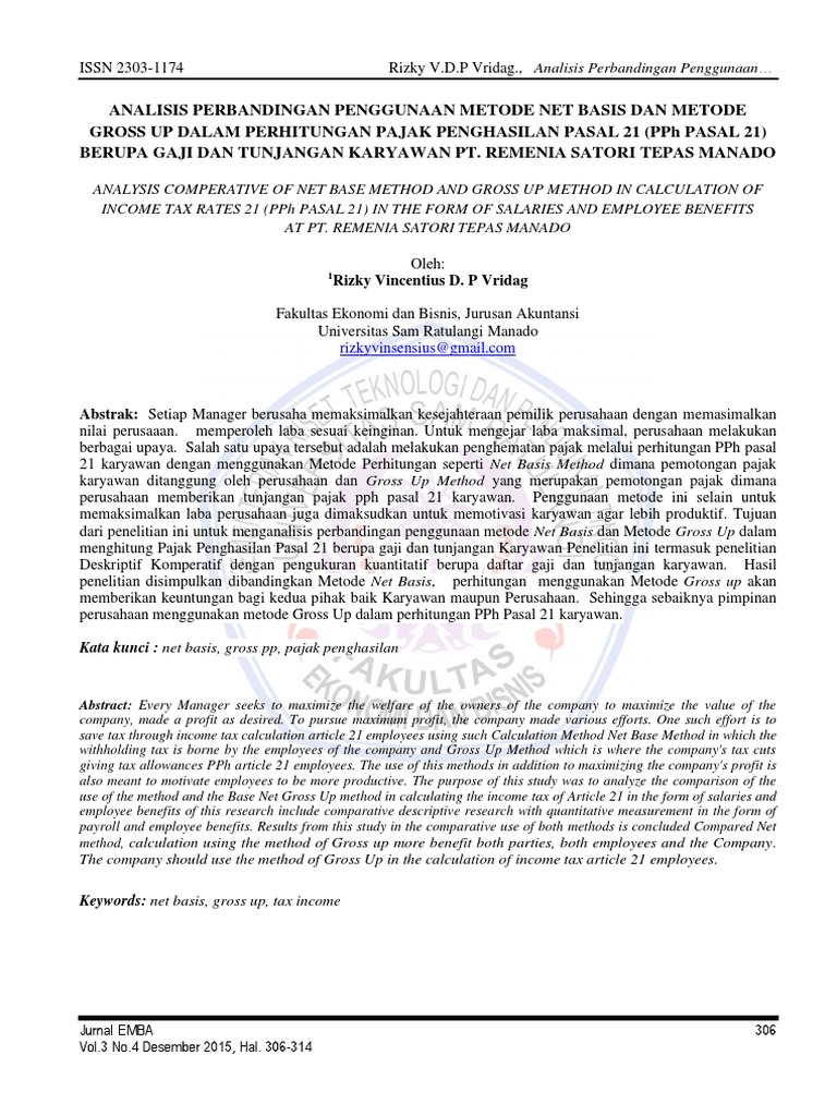 Analisis Penggunaan Metode Gross Up dalam Perhitungan ...